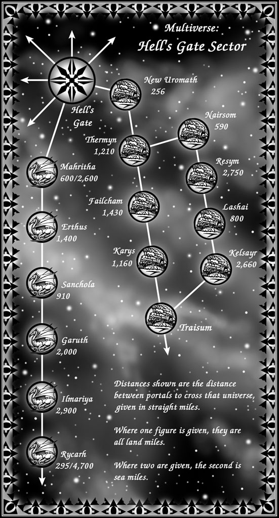 IT ALL STARTED AS A MISTAKE!Both Arcana and Sharona had explored scores of universes, each a duplicate of its own, without ever encountering another human civilization.Then that changed.Two survey expeditions met in the cool shadows of an autumn forest. No one knows who shot first, but both sides have suffered heavy casualties, and each blames the other. Now both sides want possession of Hell's Gate, the cluster of inter-universal portals and their survey forces met in blood . . . and neither is prepared to let the other have it..Arcana's wizards, dragons, and gryphons are about to meet Sharona's bolt-action rifles, machine guns, and mortars. Transport dragons are about to meet steam...