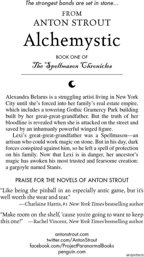 The adventures of a girl and her gargoyle continue in the second installment of this “thrilling, funny and eerie” fantasy series. —Romantic Times on Alchemystic No Stone Unturned... Alexandra Belarus was an artist stuck working in her New York family’s business…until she discovered her true legacy—a deep and ancient magic. Lexi became the last practicing Spellmason, with the power to breathe life into stone. And as her powers awoke, so did her family’s most faithful protector: a gargoyle named Stanis. But when a centuries-old evil threatened her family and her city, Stanis sacrificed himself to save everything Lexi held dear. With Stanis gone, Lexi’s efforts to master...