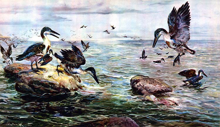 Книга посвящена животным, населявшим Землю в период ее древнейшей истории. Авторы воссоздают картину того времени и раскрывают читателю интереснейших мир развития жизни на Земле. Отличные цветные иллюстрации. От птеранодонов и рамфоринхов к археоптериксу, ихтиорнису и зубастым летающим птицам.