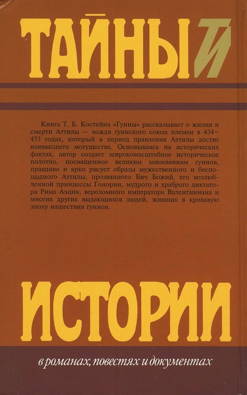 Книга Т. Б. Костейна посвящена эпохе наивысшего могущества гуннского союза, достигнутого в правление Аттилы, вождя гуннов в 434–453 гг. Кровожадный и величественный Атилла, прекрасная принцесса Гонория, дальновидный и смелый диктатор Рима Аэций — судьба и жизнь этих исторических личностей и одновременно героев книги с первых же страниц захватывает читателя.