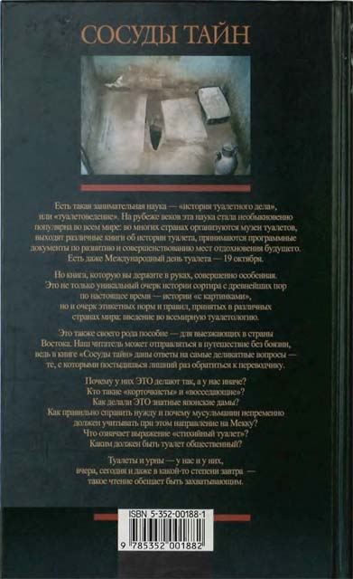Современная этнографическая наука достигла успехов в самых разных областях. Труды учёных, посвящённые этногенезу, этнографической истории, обычаям и обрядам, фольклору, материальной культуре и быту разных народов мира, заполняют в библиотеке не один шкаф. Всякий интересующийся может составить довольно ясное представление о самых разных сторонах повседневной жизни практически любого народа. И только одна тема традиционно обходится в науке стыдливым молчанием — это отхожие места, правила их использования и связанный с этим комплекс поведенческих норм (в том числе часто религиозного характера), а также способы утилизации прочих отходов жизнедеятельности (мусора различного характера). Между...