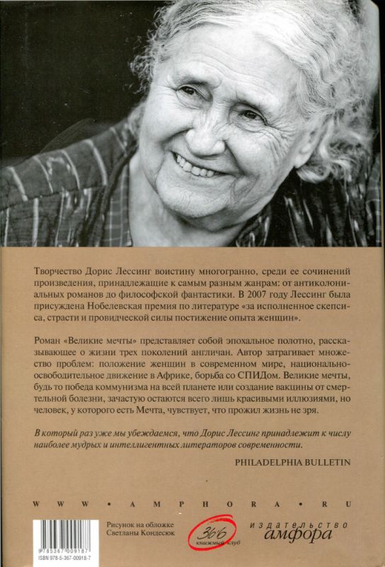 Роман «Великие мечты» представляет собой эпохальное полотно, рассказывающее о жизни трех поколений англичан и затрагивающее множество проблем: положение женщин в современном мире, национально-освободительное движение в Африке, борьба со СПИДом. Один из лучших романов знаменитой английской писательницы Дорис Лессинг, лауреата Нобелевской премии за 2007 год.