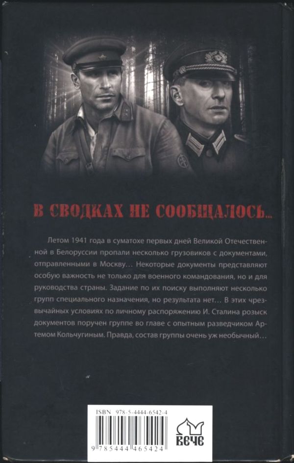 Летом 1941 года в суматохе первых дней Великой Отечественной в Белоруссии пропали несколько грузовиков с документами, отправленными в Москву… Некоторые документы представляют особую важность не только для военного командования, но и руководства страны. Задание по их поиску выполняют несколько групп специального назначения, но результата нет… В этих чрезвычайных условиях по личному распоряжению И. Сталина розыск документов поручен группе во главе с опытным разведчиком Артемом Кольчугиным. Правда, состав группы очень уж необычный…