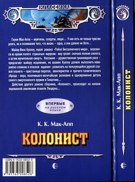 Майор Винс Куллоу, герой романа «Тайна бессолнечного мира», заразился во время полета страшным вирусом: ему грозит сначала полная слепота, а затем мучительная смерть. Нессиане — дружественная гуманоидная раса — предлагают майору исцеление, но взамен Куллоу должен выполнить невероятно сложное и опасное задание: разыскать на пользующейся дурной славой планете — пристанище пиратов, авантюристов и прочего галактического сброда — вора, похитившего величайшую реликвию и одновременно деталь самого смертоносного оружия в Галактике... В сборник также включен роман «Колонист», действие которого происходит на колонизированной землянами планете Люцерна.