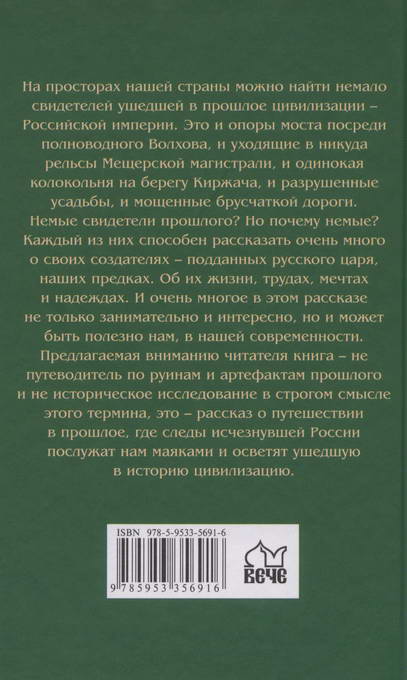 На просторах нашей страны можно найти немало свидетелей ушедшей в прошлое цивилизации — Российской империи. Это и опоры моста посреди полноводного Волхова, и уходящие в никуда рельсы Мещерской магистрали, и одинокая колокольня на берегу Киржача, и разрушенные усадьбы, и мощенные брусчаткой дороги. Немые свидетели прошлого? Но почему немые? Каждый из них способен рассказать очень много о своих создателях — подданных русского царя, наших предках. Об их жизни, трудах, мечтах и надеждах. И очень многое в этом рассказе не только занимательно и интересно, но и может быть полезно нам. в нашей современности. Предлагаемая вниманию читателя книга — не путеводитель по руинам и артефактам...