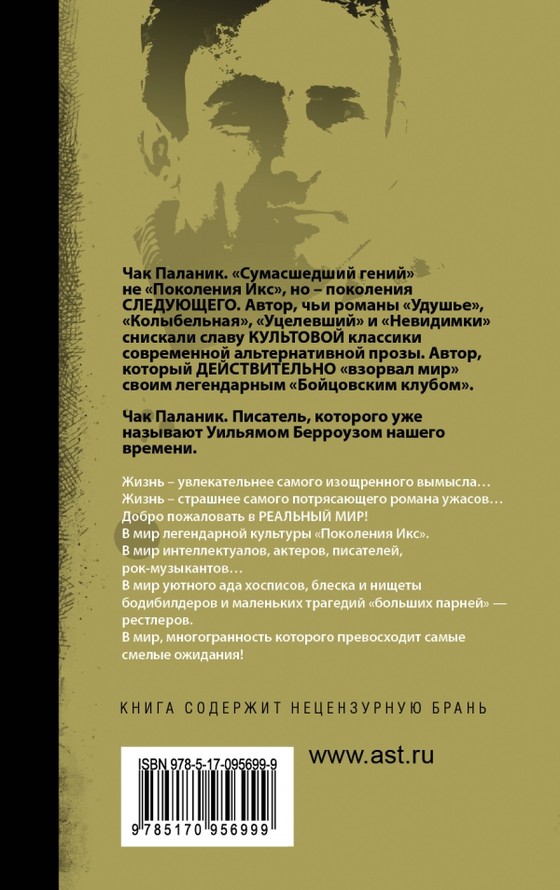 Это – самая потрясающая и самая скандальная книга 1990-х. Книга, в которой устами Чака Паланика заговорило не просто «Поколение Икс», но – «Поколение Икс» уже озлобленное, уже растерявшее свои последние иллюзии. Вы смотрели фильм «Бойцовский клуб»? Тогда – читайте книгу, по которой он был снят!