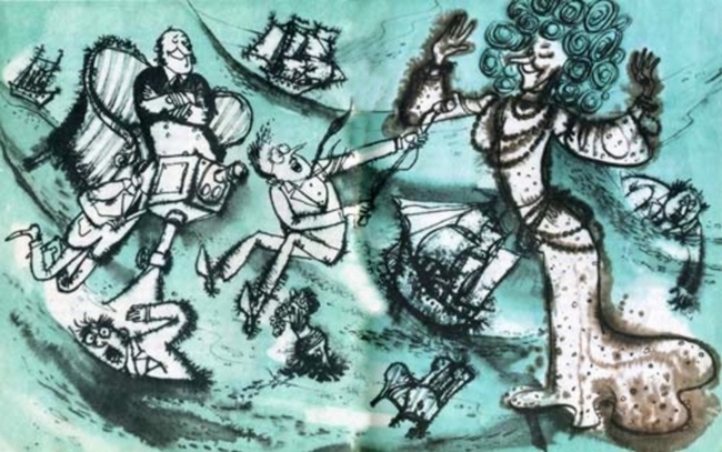 Среди бурного моря возвышался небольшой островок. А на острове жили Баба-Мора и капитан Трумм. Для младшего школьного возраста.