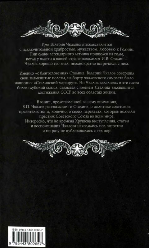 Имя Валерия Чкалова отождествляется с исключительной храбростью, мужеством, любовью к Родине. Пик славы легендарного летчика пришелся на годы, когда у власти в нашей стране находился И. В. Сталин, — Чкалов хорошо его знал, неоднократно встречался с ним. Именно с «благословений» Сталина Валерий Чкалов совершил свои знаменитые полеты, на борту чкаловского самолета было написано: «Сталинский маршрут». Но Чкалов вкладывал в эти слова более глубокий смысл, связывая с именем Сталина выдающиеся достижения СССР во всех областях жизни. В книге, представленной вашему вниманию, В. П. Чкалов рассказывает о Сталине, о политике советского правительства и, конечно, о своих перелетах, которые...