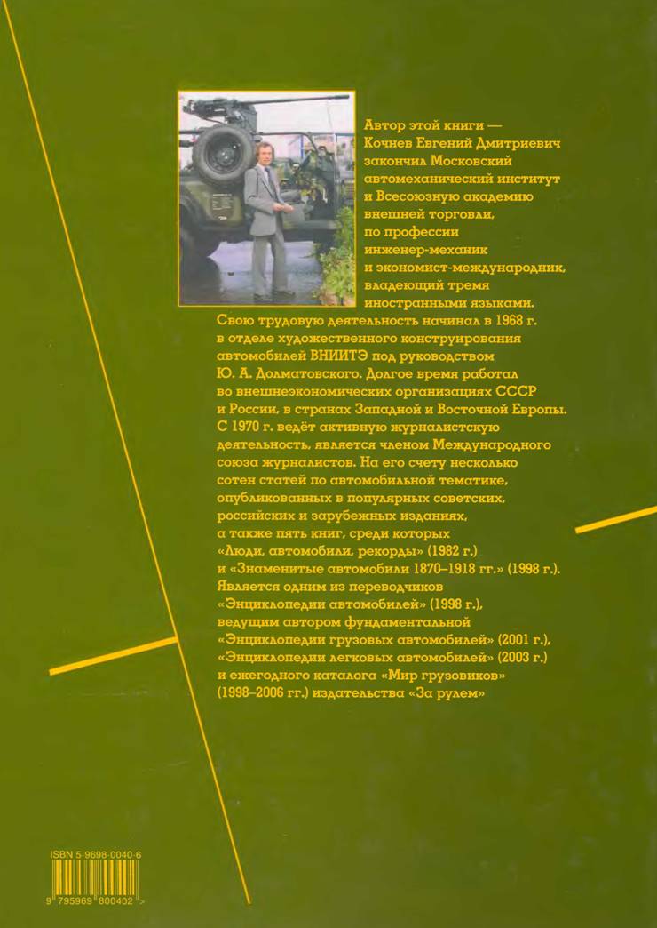 Первая в мире наиболее полная и красочно иллюстрированная энциклопедия посвящена всем видам автомобилей военного назначения, колесным боевым, инженерным и специальным машинам, выпущенным 700 фирмами и заводами России, СССР и большинства зарубежных стран в период с конца XVIII века по настоящее время. Статьи энциклопедии, посвященные деятельности определенного предприятия или марке военных машин, размещены в алфавитном порядке и сопровождаются указанием места расположения изготовителя и периода производства автомобильной военной техники, а также иллюстрациями наиболее известной и оригинальной продукции.