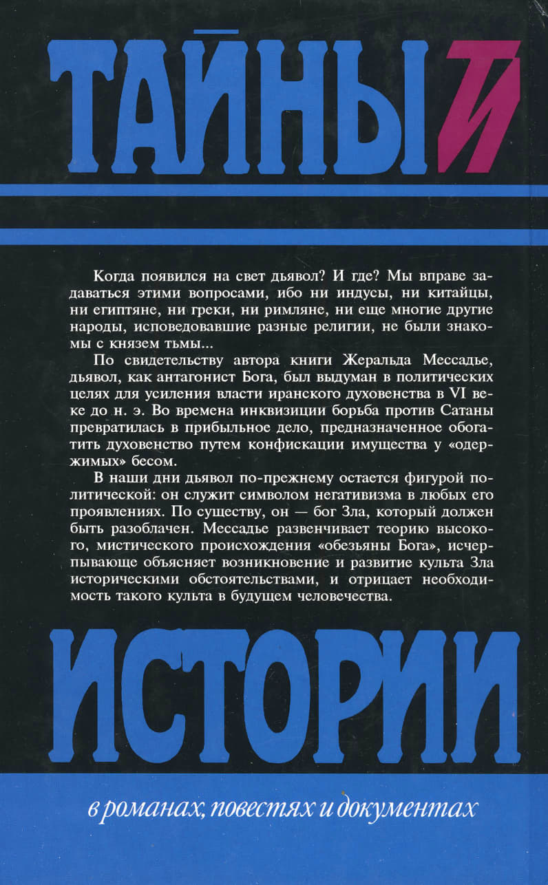 Основываясь на документальных материалах, автор книги реконструирует историю главной персонификации сил зла на земле — дьявола. Книга написана живым, увлекательным языком, насыщена интереснейшими историческими фактами.